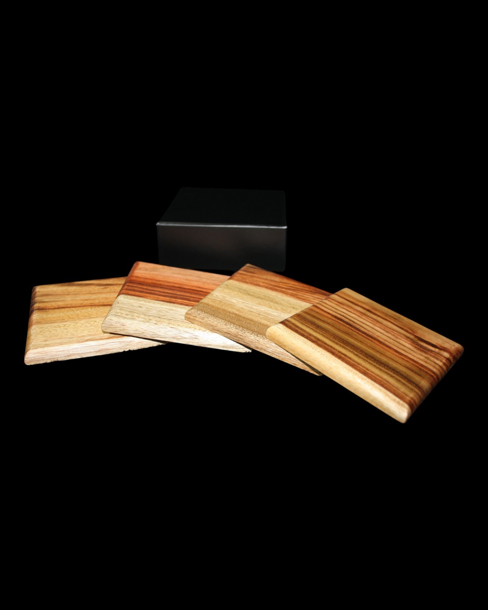 The Camphor Laurel Set of 4 Coasters offers a refined blend of natural beauty and expert craftsmanship. Each coaster measures 100mm by 100mm and is made from sustainably sourced Camphor Laurel wood, renowned for its distinctive grain patterns and rich color variations, making every set truly unique. These coasters are designed to protect your surfaces from heat and moisture while adding an elegant, organic touch to your home or office. Presented in a sleek black magnetic closing gift box, this set not only ensures safe storage but also makes an impressive gift choice for those who appreciate quality and style in their everyday accessories.